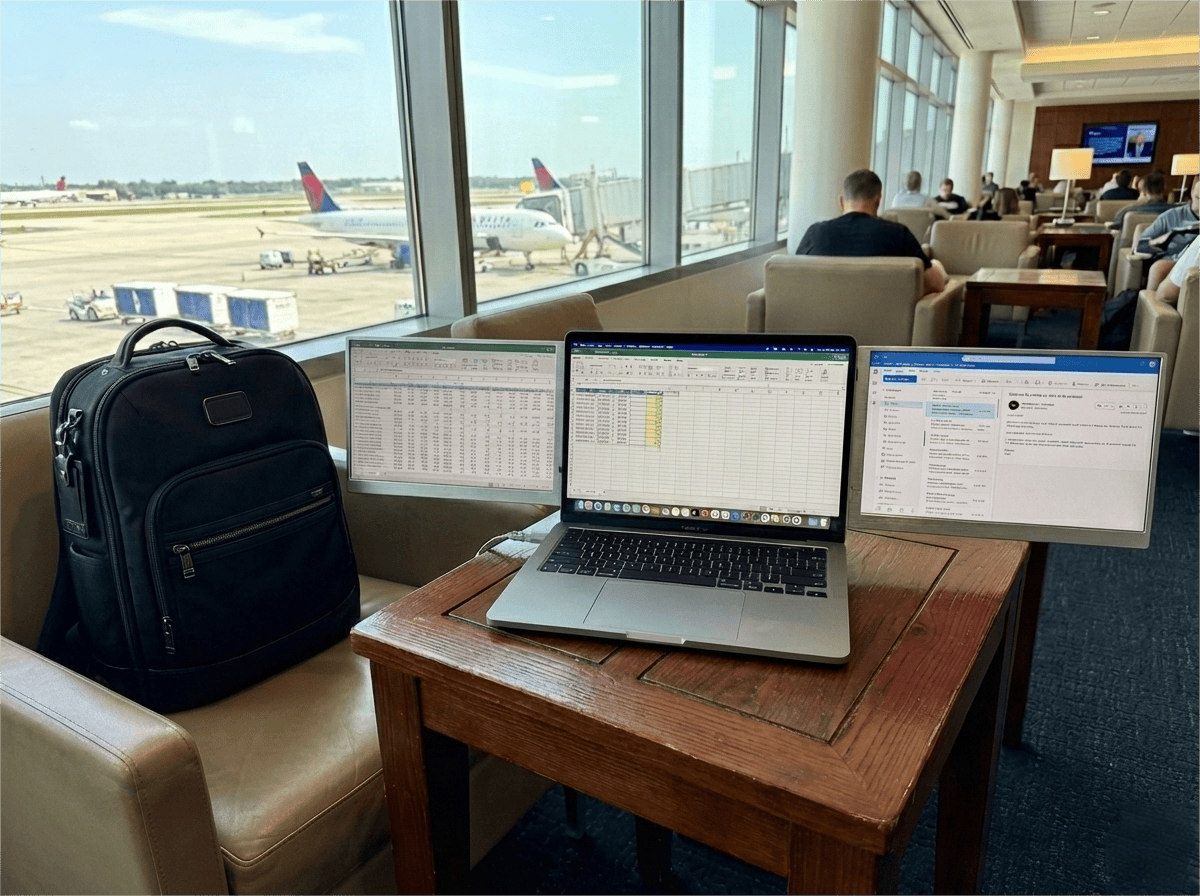 I looked at the Quad version, but honestly, it seemed too heavy for my daily commute. The Trio is the perfect sweet spot. It slides right into my Tumi backpack along with my laptop without feeling like I'm carrying a brick. I'm a consultant, so I work from different client sites every week. Setting this up takes maybe 20 seconds? The 16:10 screen ratio is actually noticeable—I see more rows in my spreadsheets. If you move around a lot, get this one instead of the Quad.