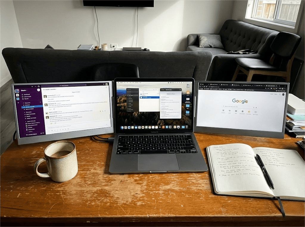I was so frustrated that my MacBook Air M2 only supported one external monitor natively. I almost bought a new Pro just for that. Found this instead. The driver install was simple (InstantView), and boom—two extra screens working perfectly. I keep Slack on the left, email on the right, and main work in the center. It feels like a proper desktop setup but I can fold it up and leave. Build quality matches the Apple grey perfectly.