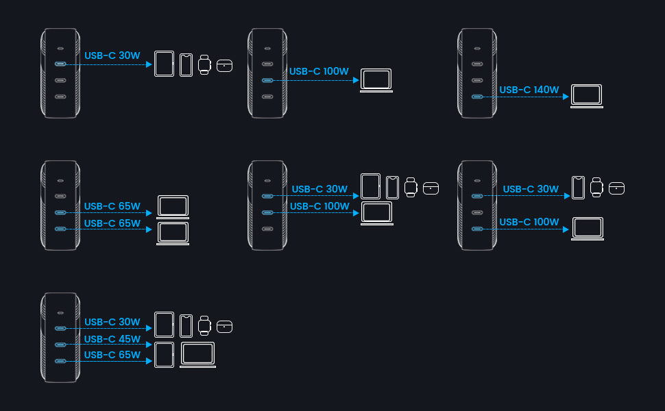 • Universal Travel Adapter: GaNHub 140W is compatible with EU/UK/AU travel adapters, it can be used worldwide, making it perfect for travelers.